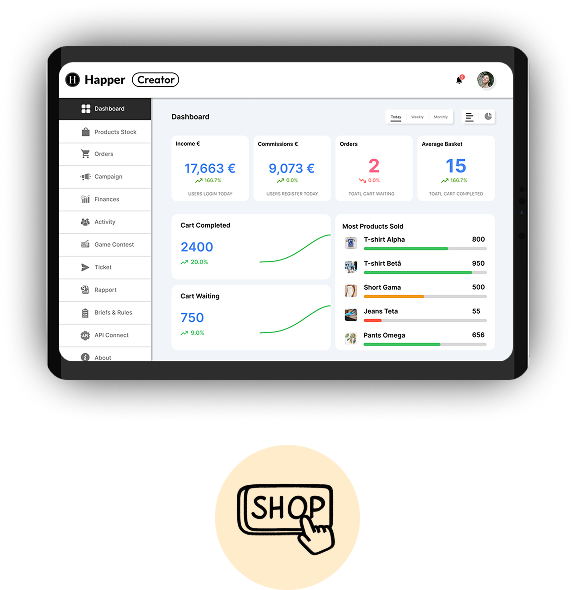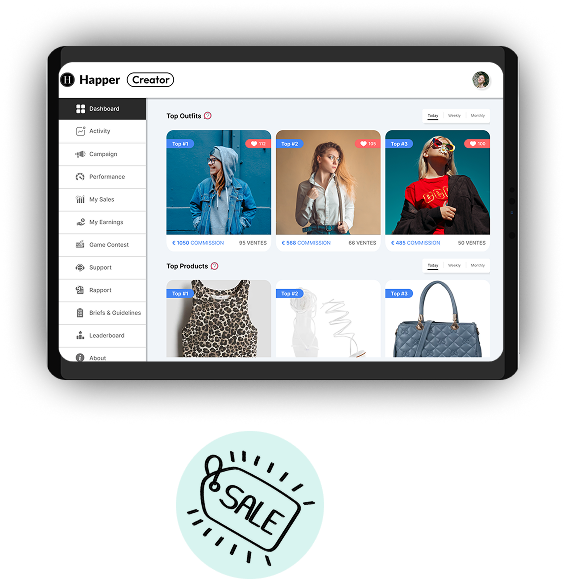 Rejoins l’univers Happer et transforme ton contenu en revenus. Sélectionne des produits que tu aimes, partage ton style, et touche une commission sur chaque vente.