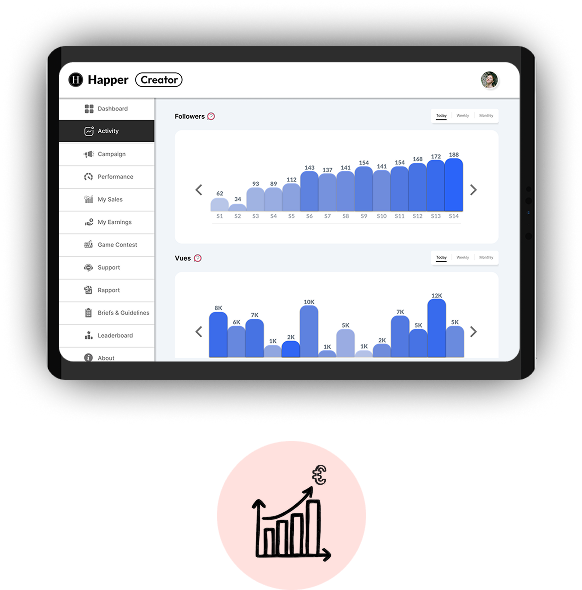 Maximise ton impact. Monétise ton talent. Avec Happer Creator.